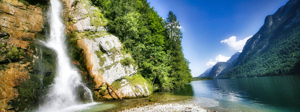 Eine leichte Wanderung führt von der Halbinsel Hirschau mit der so berühmten Wallfahrtskirche St. Bartholomä am Königssee in rund einer halben Stunde nach hinten zum wildromantischen Schrainbach-Wasserfall, dessen Wasser sich teils senkrecht in den Königssee ergießt. Die Wanderung führt auf sehr gut begehbarem Weg zuerst flach am See entlang, bis sie dann in ein paar Serpentinen hinaufführt zu den „wilden Wassern“ des Schrainbaches. Auf der Fahrt mit der Königsseeschifffahrt von der Halbinsel Hirschau nach hinten zur letzten Anlegestelle am Salet lässt sich der etwa 80 Meter hohe Wasserfall in seiner ganzen Schönheit bewundern.