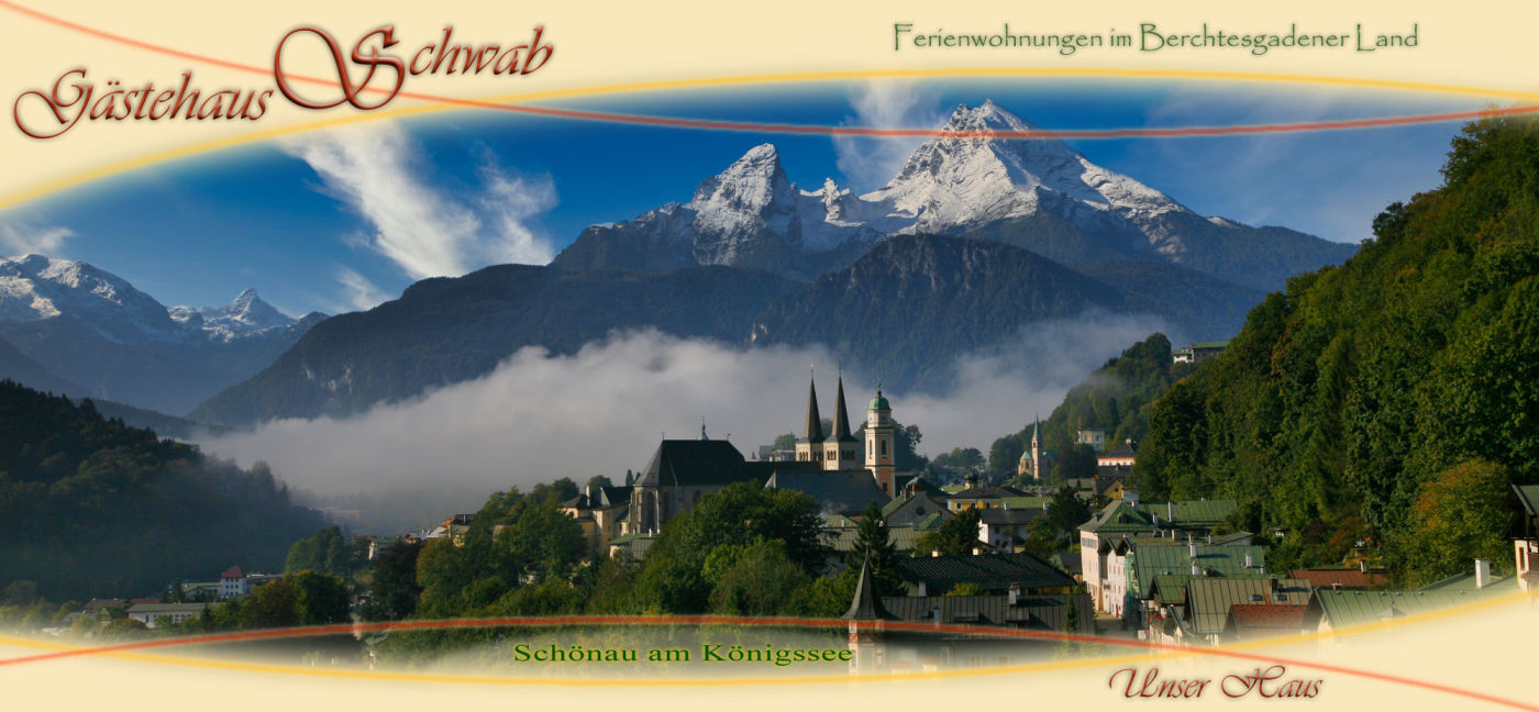 Wo Bayern am Schönsten ist! Die Nationalparkgemeinde Schönau a. Königssee bildet mit dem weltberühmten Königsseeee inmitten der Berchtesgadener Berge das Idealbild eines bayerischen Urlaubs-Orts! Im Nationalpark Berchtesgaden im südöstlichsten Teil Deutschlands direkt an der Grenze zu Österreich gelegen, thront "König" Watzmann mit seinen 2713 m Höhe über das Berchtesgadener Land und seine 5 Nationalparkgemeinden - eine Alpenlandschaft wie aus dem Bilderbuch. Schönau a. Königssee ist nach München und Garmisch-Partenkirchen die drittgrößte touristische Gemeinde in Oberbayern. Die Angebote und Einrichtungen für den Gast sind vielfältig. 120 km gut ausgebaute Wanderwege lassen die Herzen der Naturliebhaber höher schlagen und im Winter sorgen 26 km Langlaufloipen, die Skigebiete Jenner und Grünstein sowie die Naturrodelbahnen für Begeisterung bei den Wintersportlern. Zu jeder Jahreszeit gibt es in Schönau a. Königssee Veranstaltungen der besonderen Art wie das Seefest oder "Musikalisch vom Frühling in den Bergsommer", wo jeden Sonntag auf einer anderen Hütte bayerische Musikanten aufspielen. Im Winter werden u. a. alpine Laternen-Wanderungen für unsere Gäste durchgeführt. Besonders beliebt sind die tradtionellen Bräuche im Ablauf des Kalenderjahres, z.B. das Maibaum-Aufstellen, die Almer Wallfahrt oder der Almabtrieb in Schönau a. Königssee.