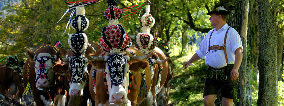 Der Almabtrieb ist das Dankfest der Bauern, Senner und Hirten, wenn das Vieh wieder gesund von der Alm zurück in den Stall kommt. Im Berchtesgadener Land kann man jedes Jahr Ende September/Anfang Oktober je nach Witterung den Almabtrieb der herrlich geschmückten Tierebeobachten. Eine der schönsten Almabtriebe findet man an der Seelände am Königssee.